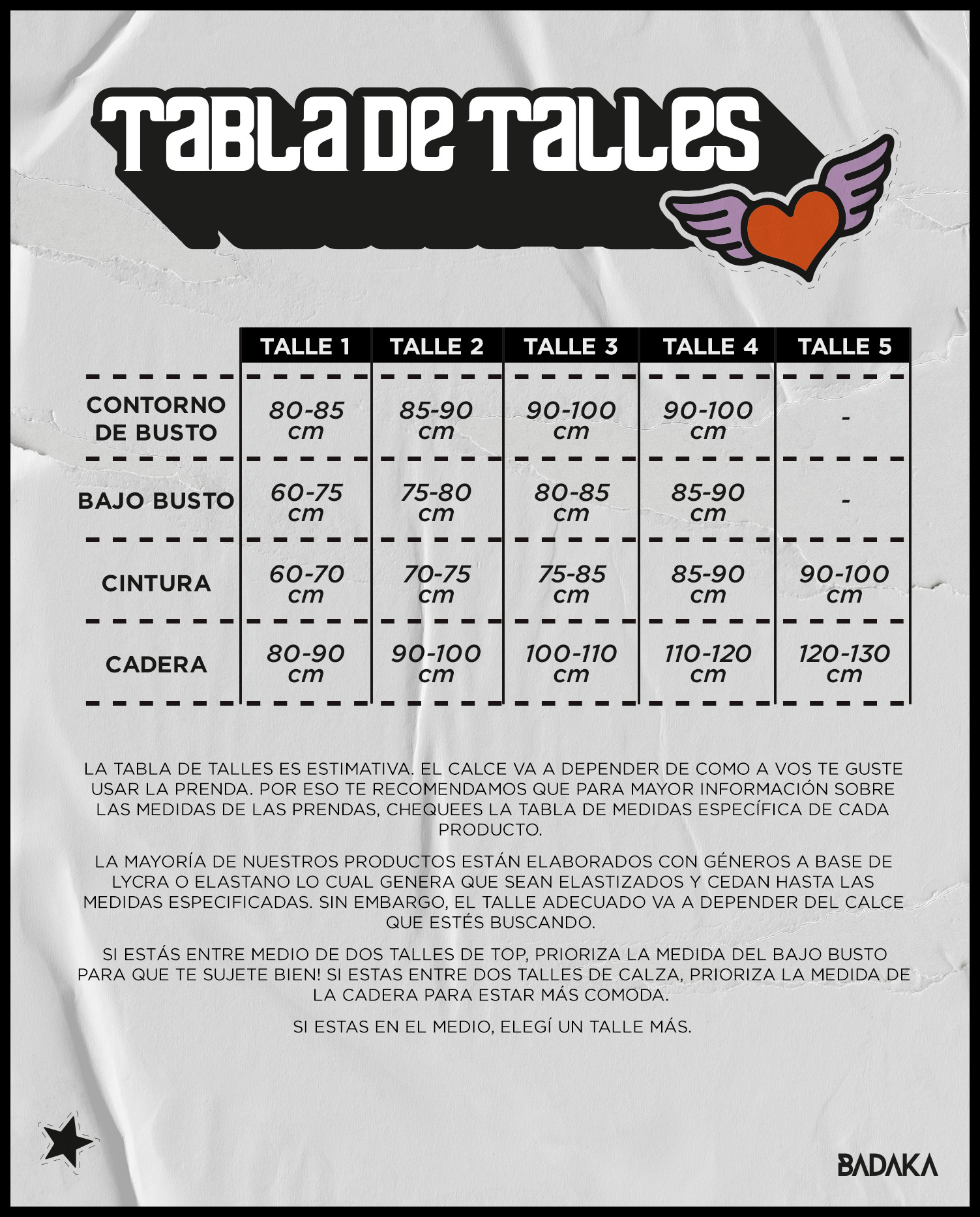 Atención: No te olvides que la guía de talles es estimativa y que la foto puede diferir del color real de la prenda debido a la luz e iluminación de la pantalla.